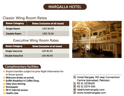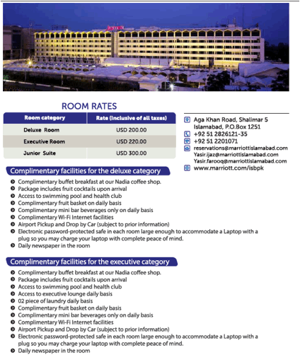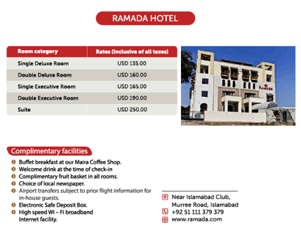 rates for selected hotels are mentioned below, however, PTA and HEC are in